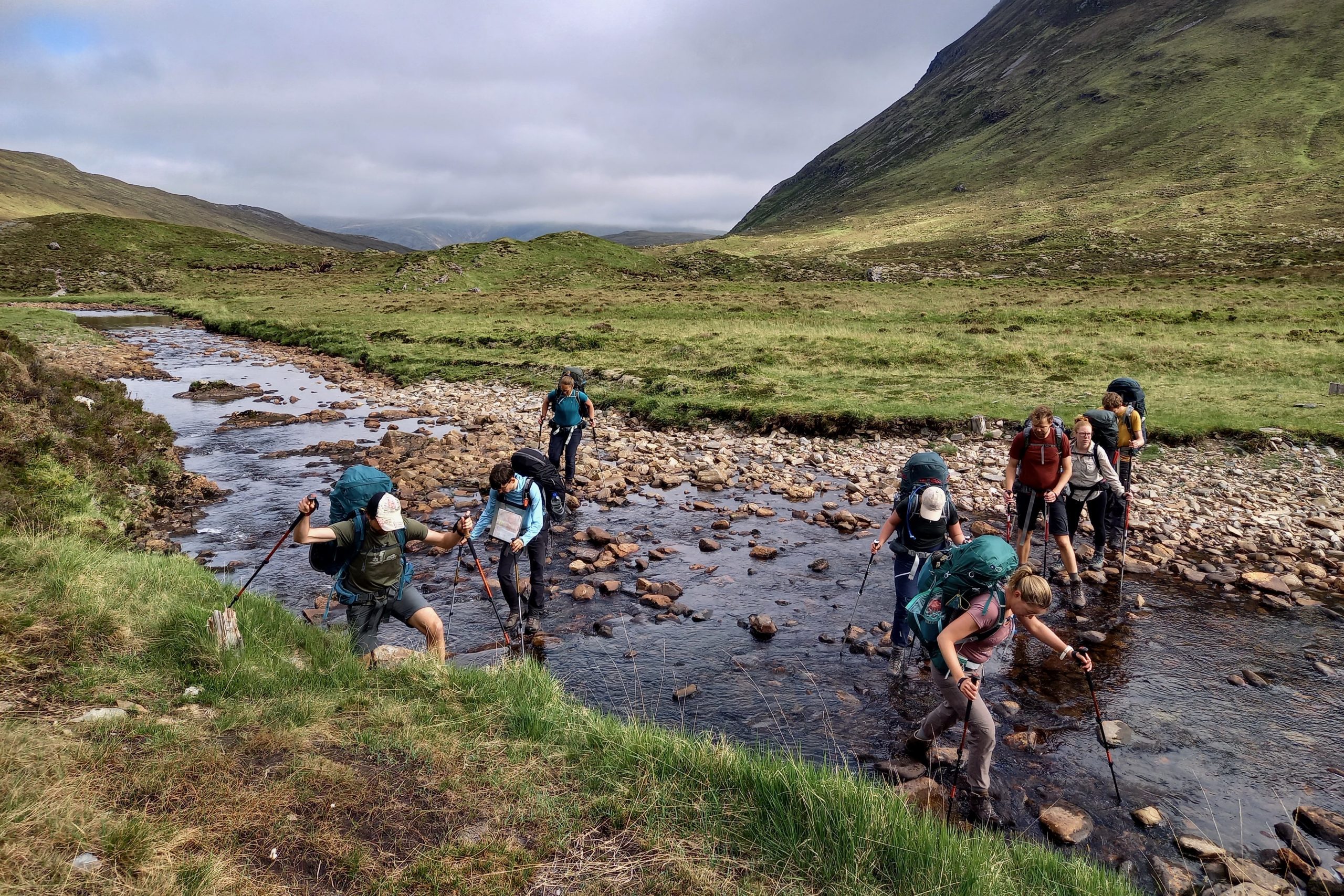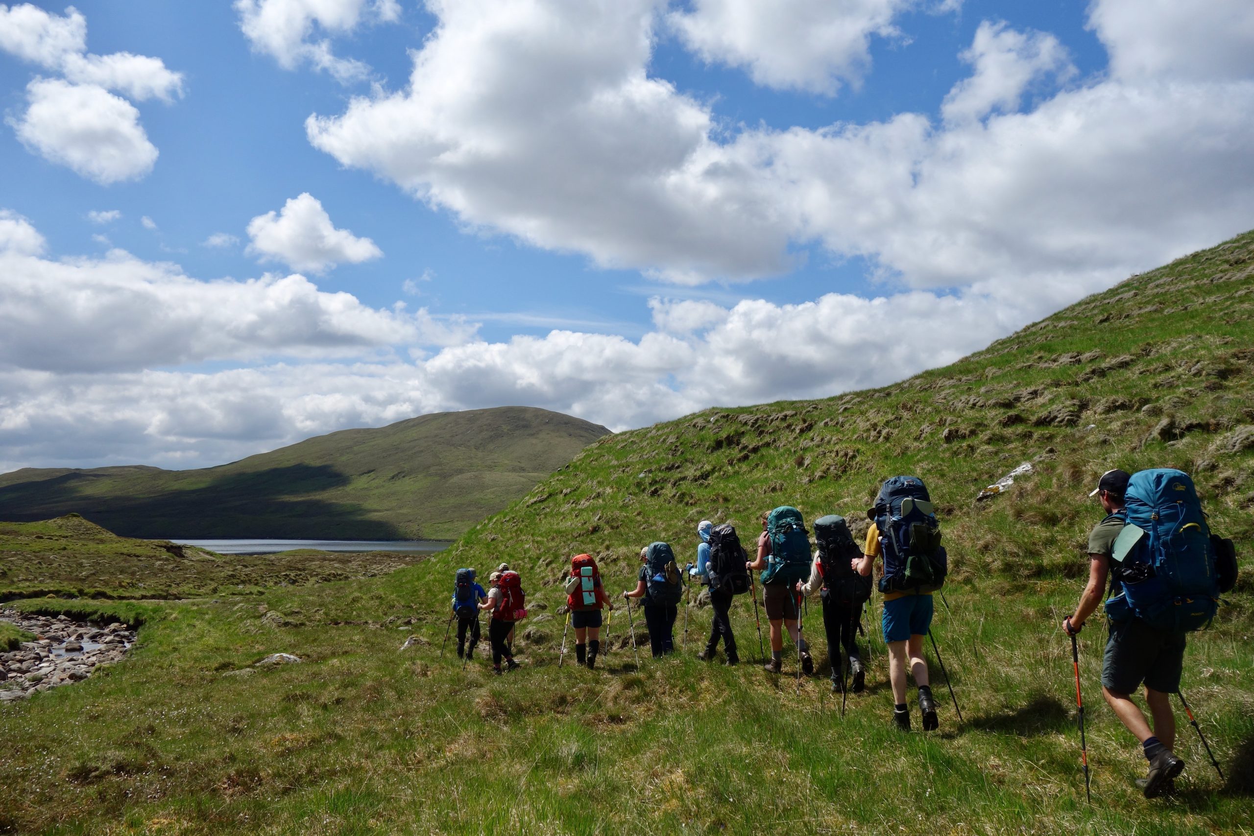 We kijken terug op een prachtige tocht in de Highlands van Schotland. In mei 2024 trokken we een week dwars door de Schotse wildernis, met alles wat we nodig hadden in onze rugzak. Soms over goede paden, maar regelmatig ook dwars door het landschap, met kaart en kompas zoekend naar de juiste koers voor onze route. We kampeerden op prachtige plekjes, in het avondzonnetje aan een loch of bij een riviertje. We hadden het rijk voor ons alleen, we kwamen slechts een handjevol andere hikers tegen in dit uitgestrekte gebied. Op de achtergrond steeds het geluid van de koekoek, en de gezelligheid van de groep!